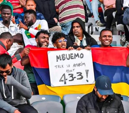 雷速体育10月9日宣 世界杯非洲区预选赛第9轮,喀麦隆客场2-0战胜毛里求斯。在比赛看台上,有毛里求斯球迷举标语调侃效力于曼联的喀麦隆前锋姆伯莫和曼联主帅阿莫林。