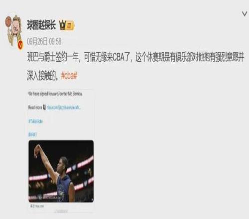 值得一提的是,今夏休赛期有CBA球队非常渴望能与班巴合作,此前他与爵士签约之后暂时搁浅,如今这哥们自由身了,也许真的可以探讨下来华打球的话题。