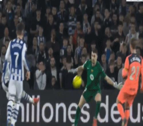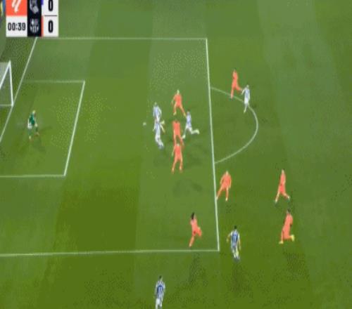 伤停补时第2分钟,佩德里妙传,亚马尔禁区右侧插上,小角度起脚兜射,雷米罗飞身单掌将球扑出,皇家社会逃过一劫。