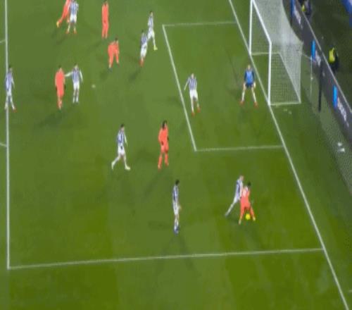 第7分钟,奥尔莫前场抢断,费尔明禁区外推射破门,不过皇家社会球员集体投诉奥尔莫犯规在先。