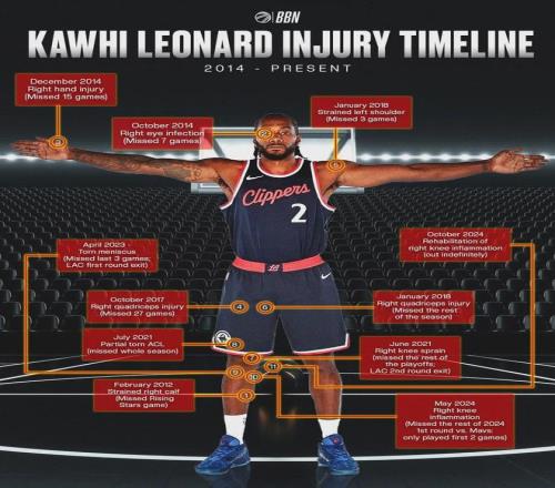 2021年7月,伦纳德遭遇右膝十字韧带撕裂;2023年4月,他又遭遇右膝盖半月板撕裂。教主搜了一下,小卡的左膝盖此前并没有大伤过,希望这次不会缺席太久。伦纳德对快船有多重要?本赛季当他缺席时,快船战绩只有3胜8负。