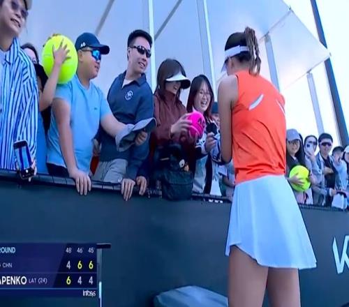 第三盘的第二局比赛,奥斯塔彭科连续得分,顺利保发成功。第三盘的第三局比赛,王欣瑜两次拿到局点还是没能兑现,其中出现双误,王欣瑜被破发,大比分1比2落后。